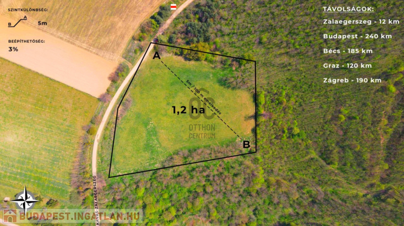 Zalaegerszegtől 12 km-re, nyugatra, Kávás területén eladó egy 1,2 hektár méretű építési telek.