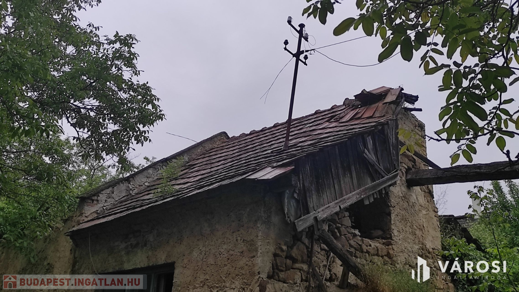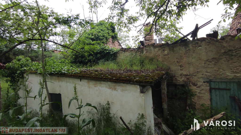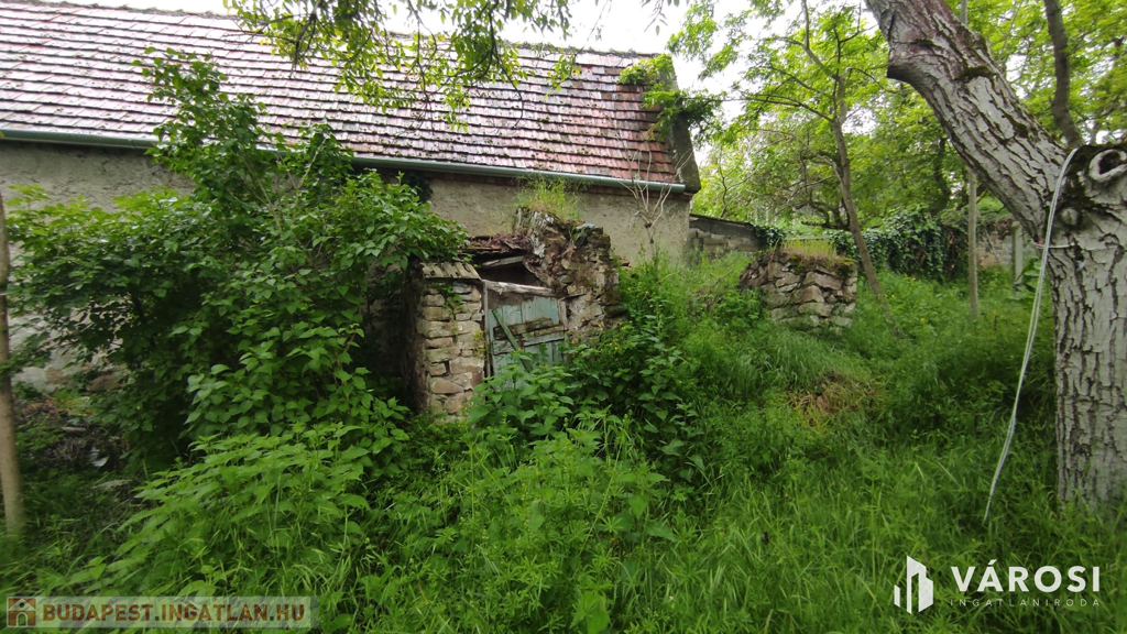 A valamikor szebb napokat megélt épület, az előtte álló ugyancsak romos épület udvarán keresztül szolgalmi joggal megközelíthető. A domboldalon elnyúló telek területe 504 m2, - kilátással a kővágóörsi hegyekre, - oldalhatáron beépített. Az alaprajzon feltüntetett épület falai állnak, helyiségei jól kivehetők. Két szoba, konyha, nappali, fürdőszoba volt a régi házban.