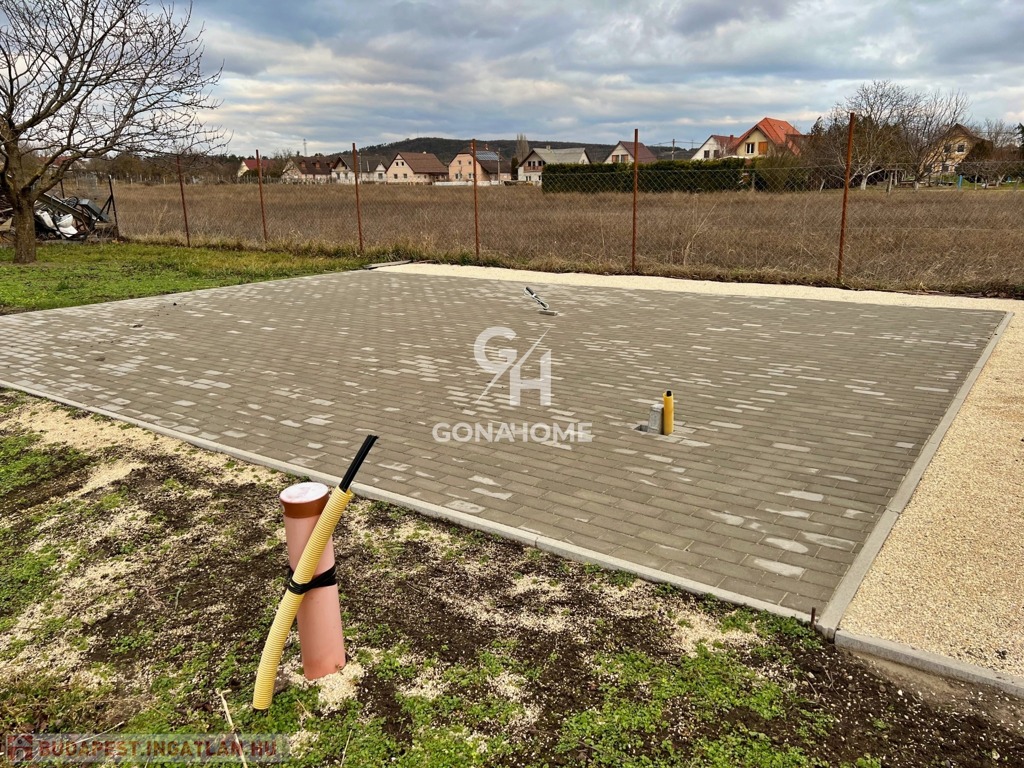 - A telek hátsó részén kialakított térkövezett terület 62 m2, a térkövezés alatt pedig bekötésre kerültek a közművek, illetve kialakításra került az oszlop fogadó alapozás is