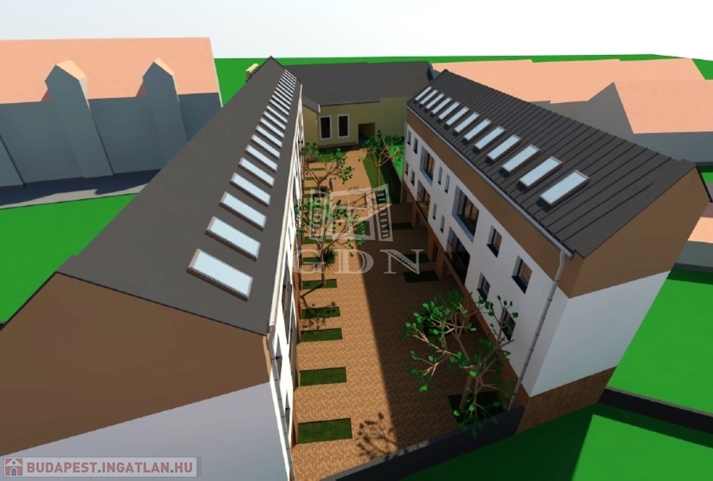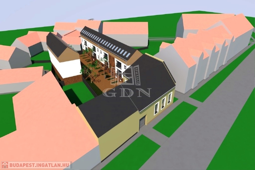 Az ingatlan 18 lakás megépítési lehetőségével és egy utcafronti felújításra szoruló polgári házzal eladó. Az utcafronti, városképileg védett polgári ház mögötti telken maximálisan 18 db új lakás és 20 db garázs valósítható meg.