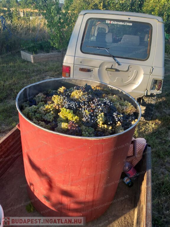A kertben termő legalább 20 db termő gyümölcsfa van, és 4 sor vegyes borszőlő