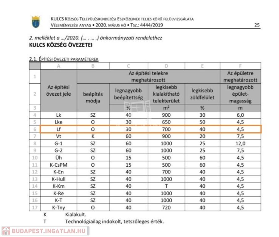 - legnagyobb megengedett épületmagasság 4,5 méter