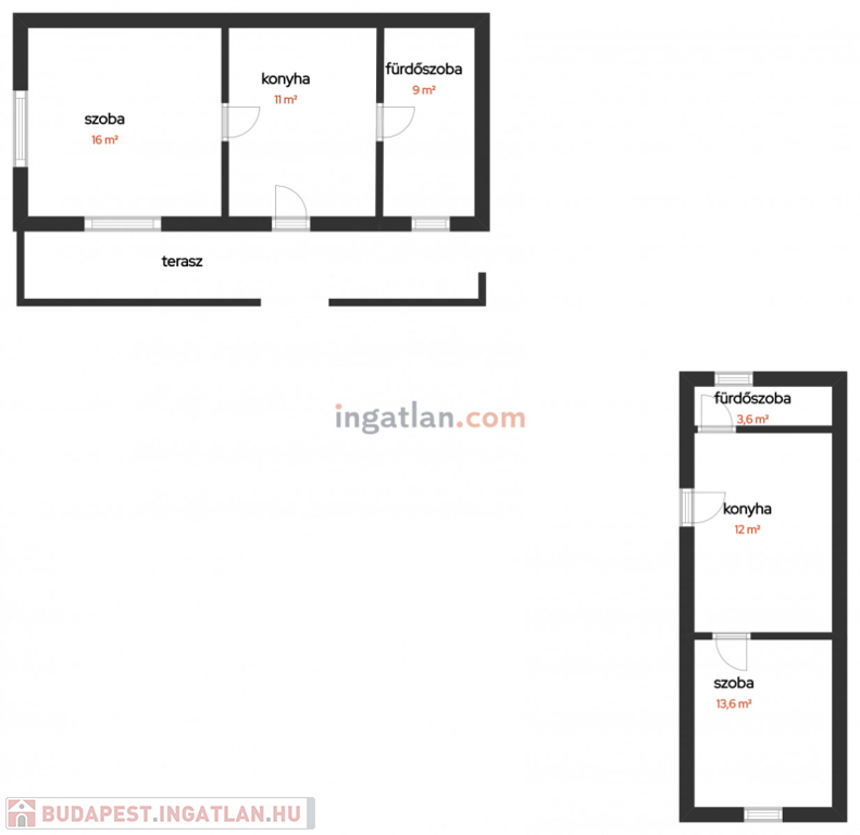- mindkét házban benn a víz, a kisebb házban a fürdőben csak wc van, de tusoló kialakítható