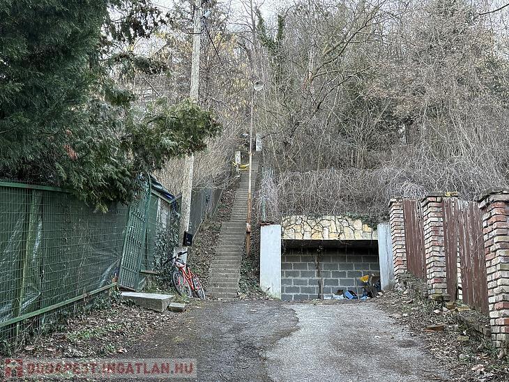 –Személygépkocsival nem elérhető, a telek csak gyalogosan megközelíthető. Parkolni az utcában lehetséges.