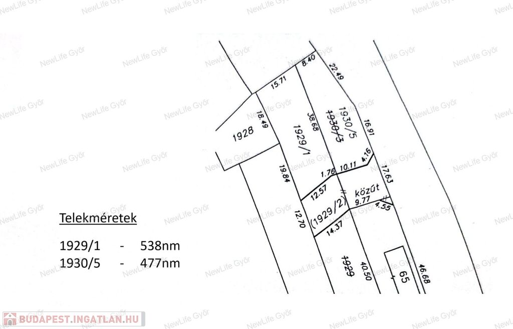 Telekméret: 1015 m² (2 helyrajzi számon: 538 m² + 477 m²)