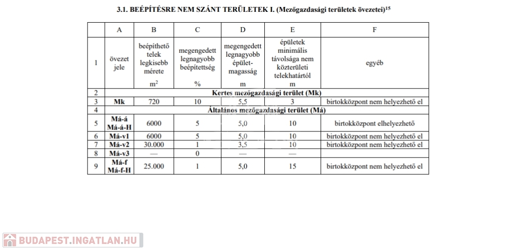 Má-á, azaz általános mezőgazdasági övezetbe tartozik, csak 6000 m2-nél nagyobb terület beépíthető 5%-ban.
