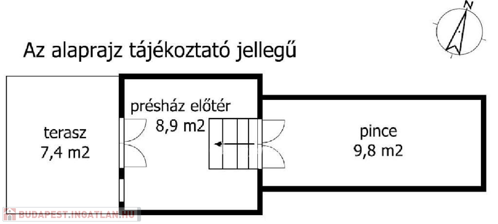 Az ingatlan része egy 32,5 m2-es présház borospincével, amelynek emeletén egy pihenőszoba található. Az épületben bevezetett villany és kályhás fűtés biztosítja az alapvető kényelmet, a vízellátás ásott kútból és esővízgyűjtéssel megoldott.
