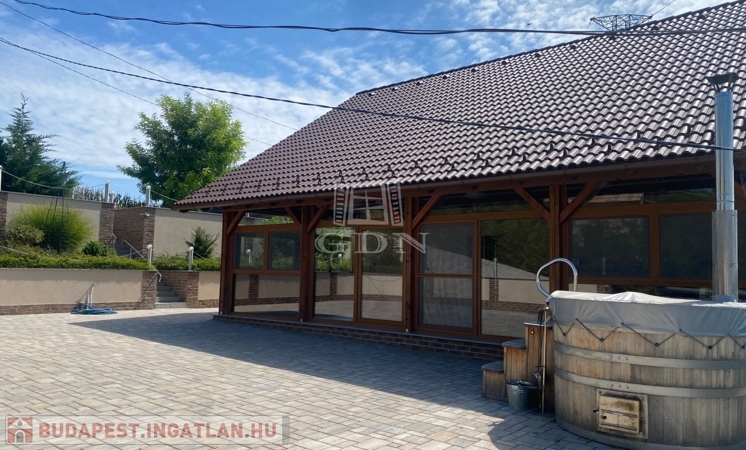 A telken elhelyeztek egy 3000 l nagyságú dézsafürdőt, melyből a csodálatos panorámában gyönyörködhetünk.