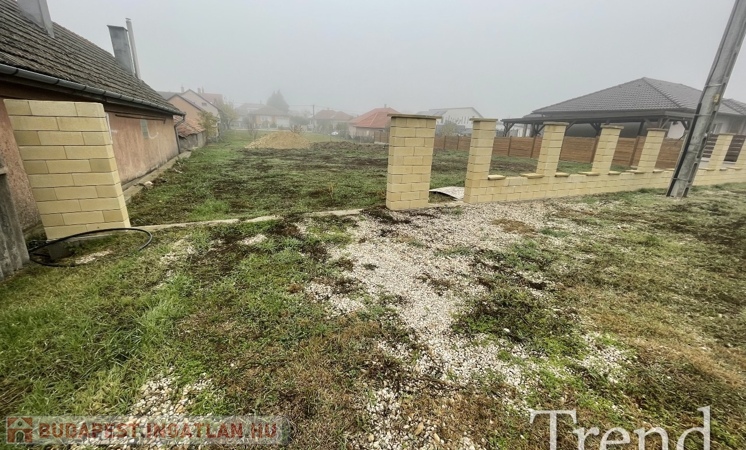 Utca fronton kerítés befejezésre vár, a közművek közül villany, gáz, csatorna a telken belül, a vizet be kell még vezetni!
