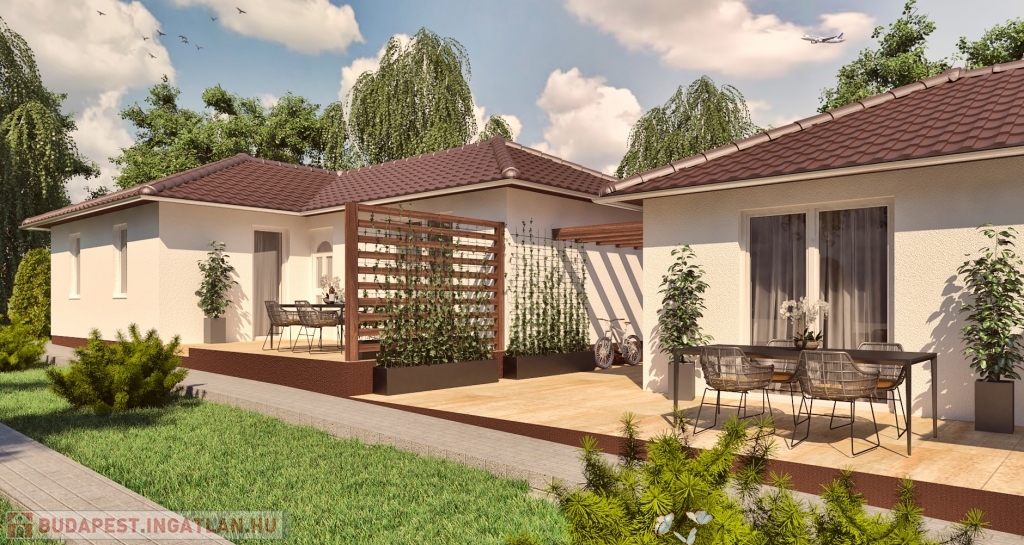 Az ingatlan egy eredetileg 3400 nm-es telek megosztásából jött létre, önálló családi ház vagy ikerház felépítésére is alkalmas .( 700-700 nm-es kert ) A helyi szabályozási terv szerint besorolása Lf 26 , beépítési módja oldalhatáron álló, beépíthetőség 30%, max. építmény magasság 4,5m.