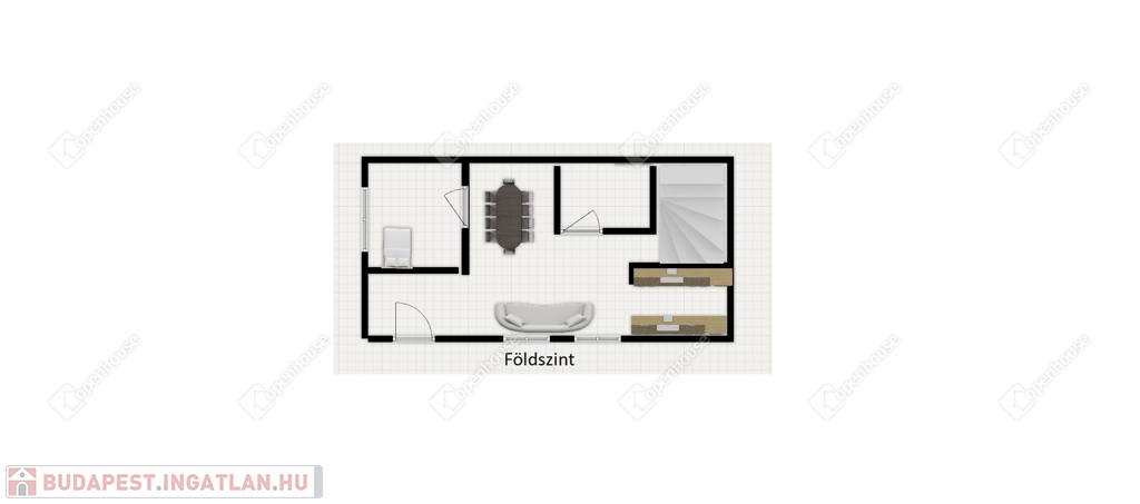 Magas földszinten található egy előtér ebből nyílik egy tágas napfényes Amerikai konyha étkezővel, szintén innen nyílik egy hálószoba és egy praktikusan elrendezett fürdőszoba – wcvel egyben. A felső szint lépcsőn közelíthető meg innen nyílik egy hálószoba-gardróbbal és egy nagyméretű terasz melyről a dunai panorámát élvezhetjük.