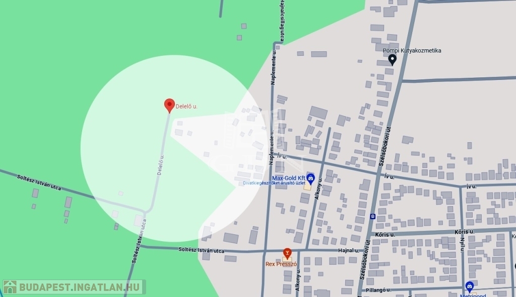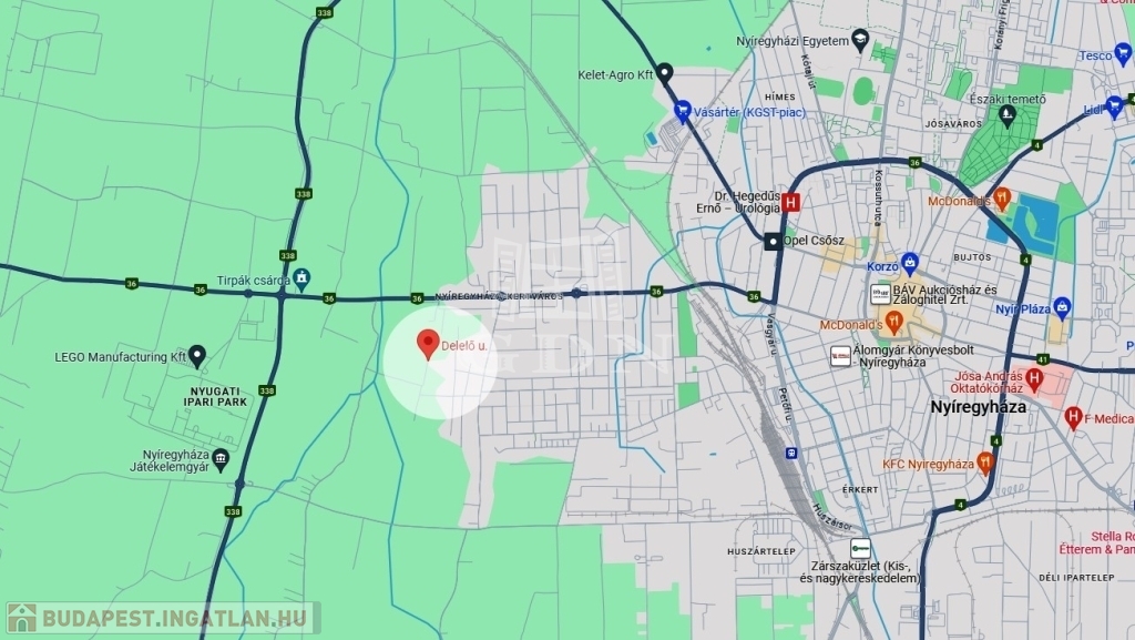 A telek Nyíregyháza Kertvárosi részén, felkapott, jómódu rendkívül csendes környezetben helyezkedik el, így az értékállósága adott. A telektől pár percre található a Kertvárosi játszótér és KRESZ park, gyógyszertár, gimnázium, étterem, hotel, bútorbolt, COOP boltok, autó szervizek, és még számos egyéb kereskedelmi és szolgáltató egységek. Az utca közelében rengeteg új ház épült illettve van már több ingatlan is az utcában, így a Delelő utca is hamarosan teljesen be fog épülni.