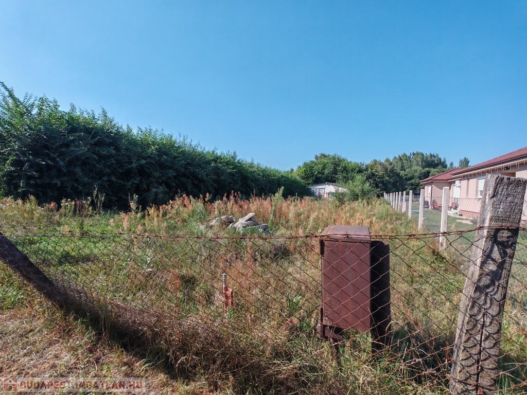 Nyíregyháza-Sóstóhegyen 1000 m²-es, körbekerített építési telek eladó. Víz, gáz, áram a telken belül, csatornázás az utca elején. A telken még található egy betonalappal rendelkező kis, vasszerkezetű építmény.