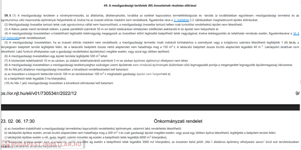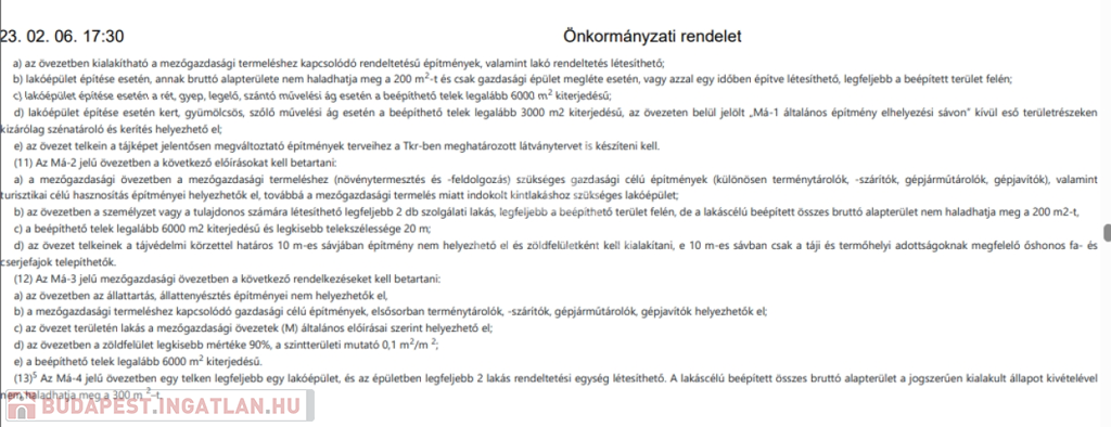 Ezek a területek csak 50.000 nm-től lennének beépíthetőek.1325 nm belőle 6-os, 710 nm pedig 7-es minőségi osztályú.