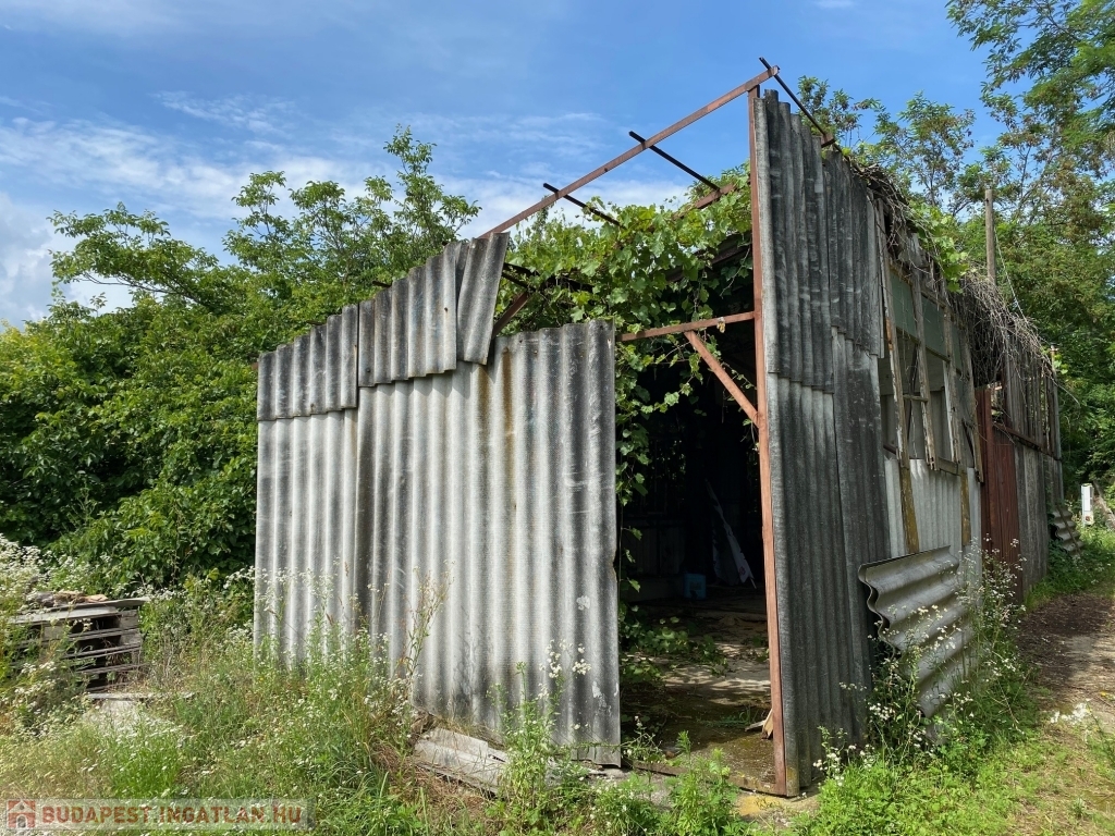 Területen található egy betonalappal rendelkező épület, pince, fúrt kút.