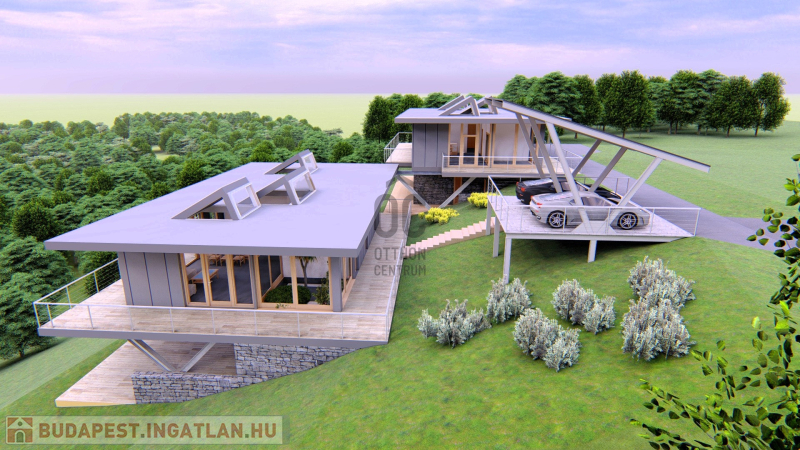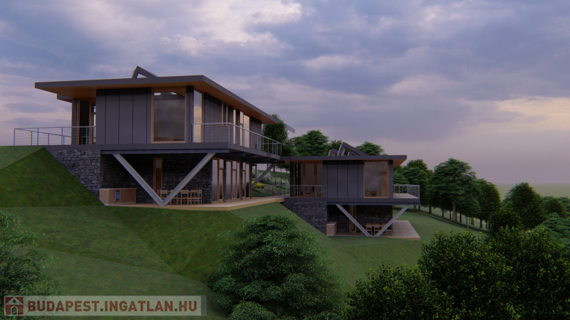 Az elképzelt két ingatlan privát szférája teljesen elkülönül egymástól, illetve az utca szintjétől és egyedi tervezői ötletességgel alkalmazkodnak a terepviszonyokhoz.