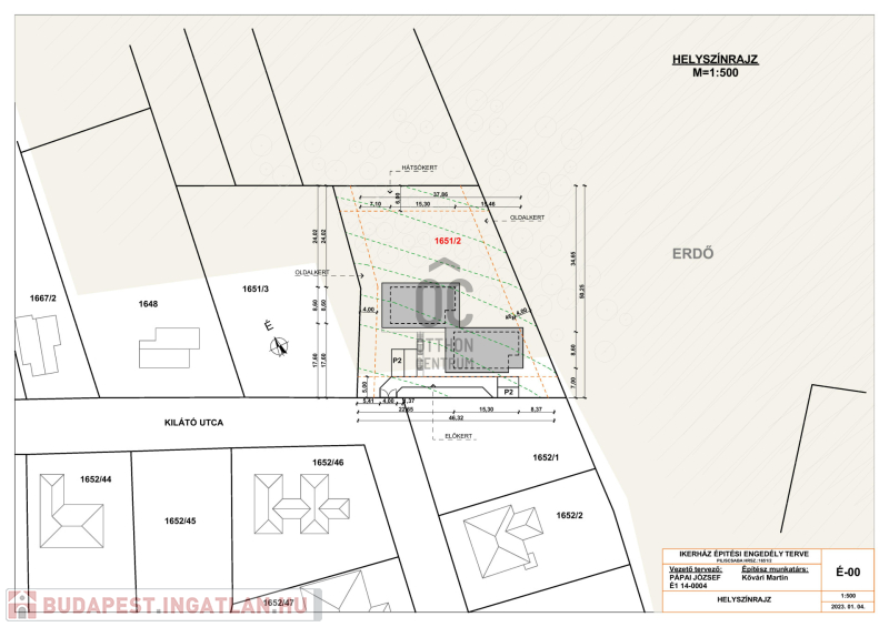 Építési telek paraméterei: