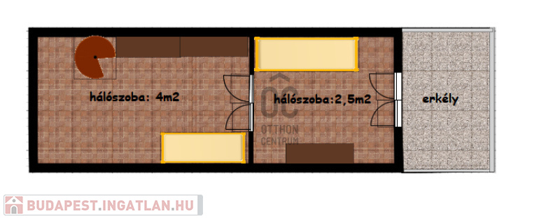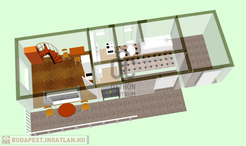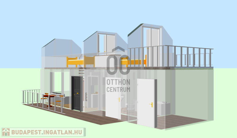 - földszint 23m2+terasz, emelet 6,5m2, közel 10m2-es erkéllyel