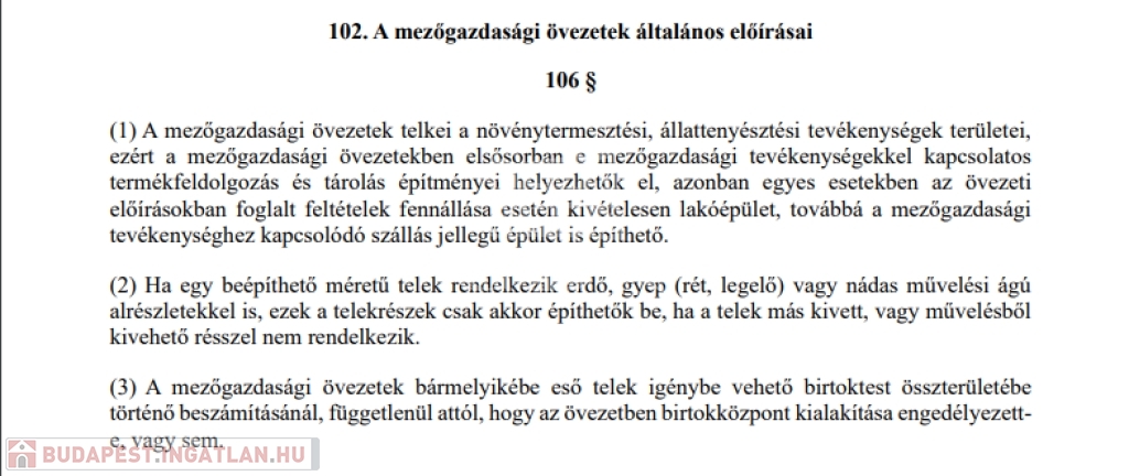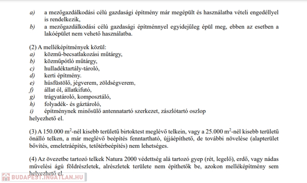 A telek Má-f besorolású, farmergazdasági általános mezőgazdasági terület. Csak 10.000 m2 felett beépíthető 1%-ban.