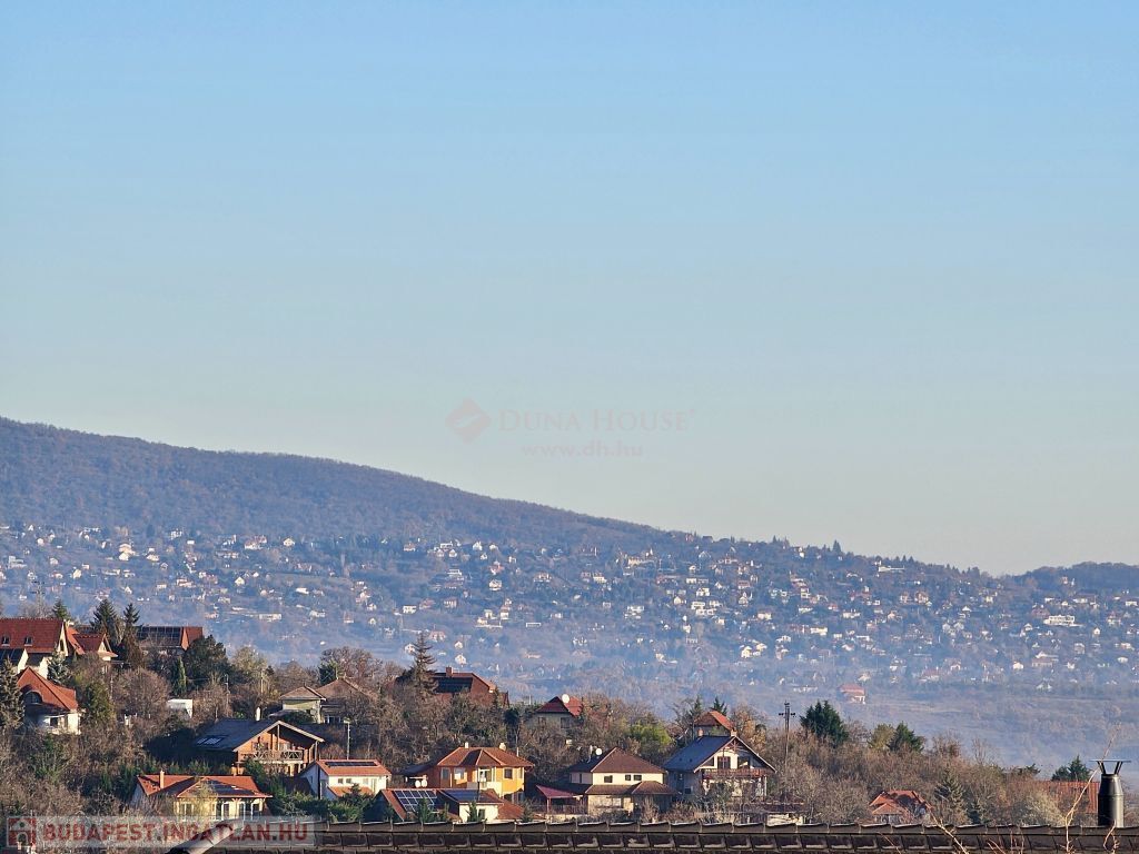 A kilátás a Pilis hegyeire, Pomáz településre, Szentendrére, tiszta levegő esetén Dunakeszire és a Megyeri hídra nyílik.