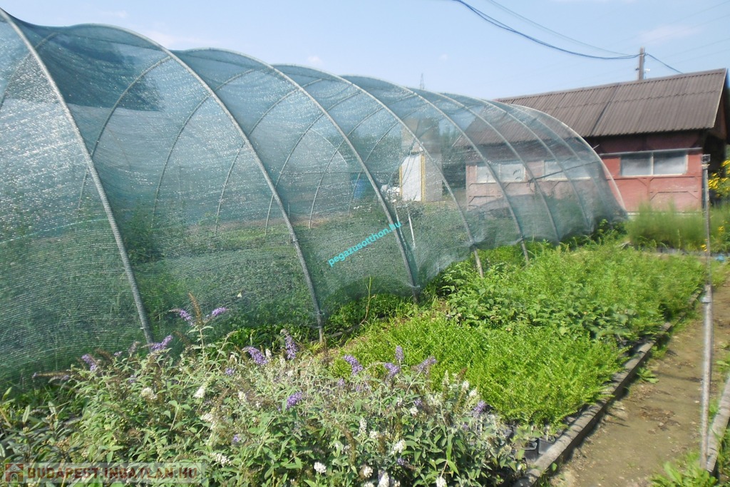 1000 m2 nagyságú raschel háló rendszer, mely alatt évelő