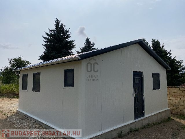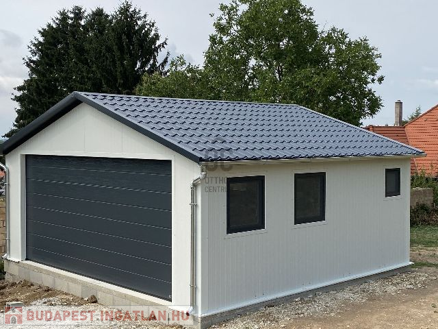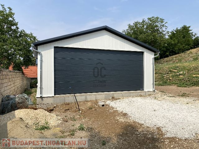 A telken található egy új építésű, hőszigetelt, szendvicspanel dupla garázs épület. Hörmann hőszigetelt motoros garázskapu, 4 db műanyag szigetelt bukó-nyíló ablak fix szúnyoghálóval és egy több ponton záródó szigetelt bejárati ajtó került beépítésre. Egy vizes blokk kiépítése is előkészítésre került, melyhez egy 10 m³-es emésztő lett megépítve. Az épület alapterülete 36.5 m². Építkezés idejére akár kiváló lakhatást biztosít, későbbiekben pedig 2 gépkocsi tárolására alkalmas. Található még a területen egy szintén új építésű kerti szerszámtároló is, melynek mérete 2.5 x 3 m.