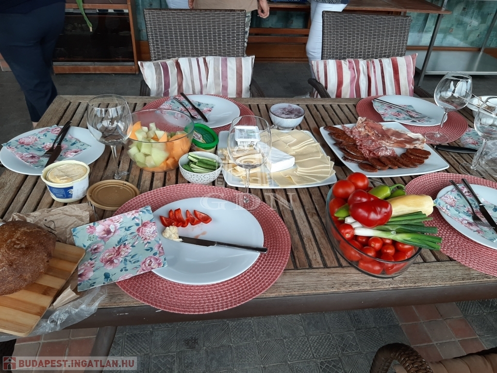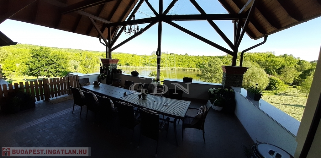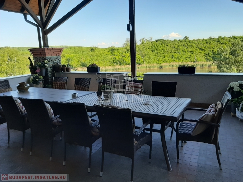 A belső térre is néz egy terasz. Az épület nappalijából nyíló hatalmas erkélyről a természet színes világában és a halastó csillogó vízfelületében gyönyörködhetünk.