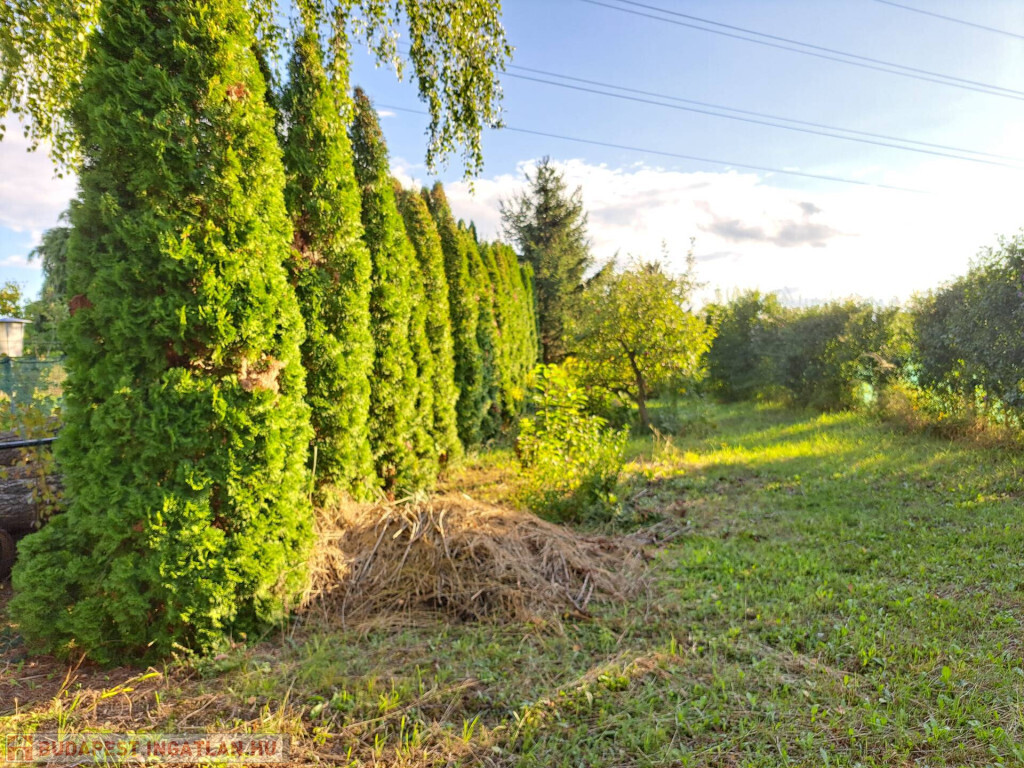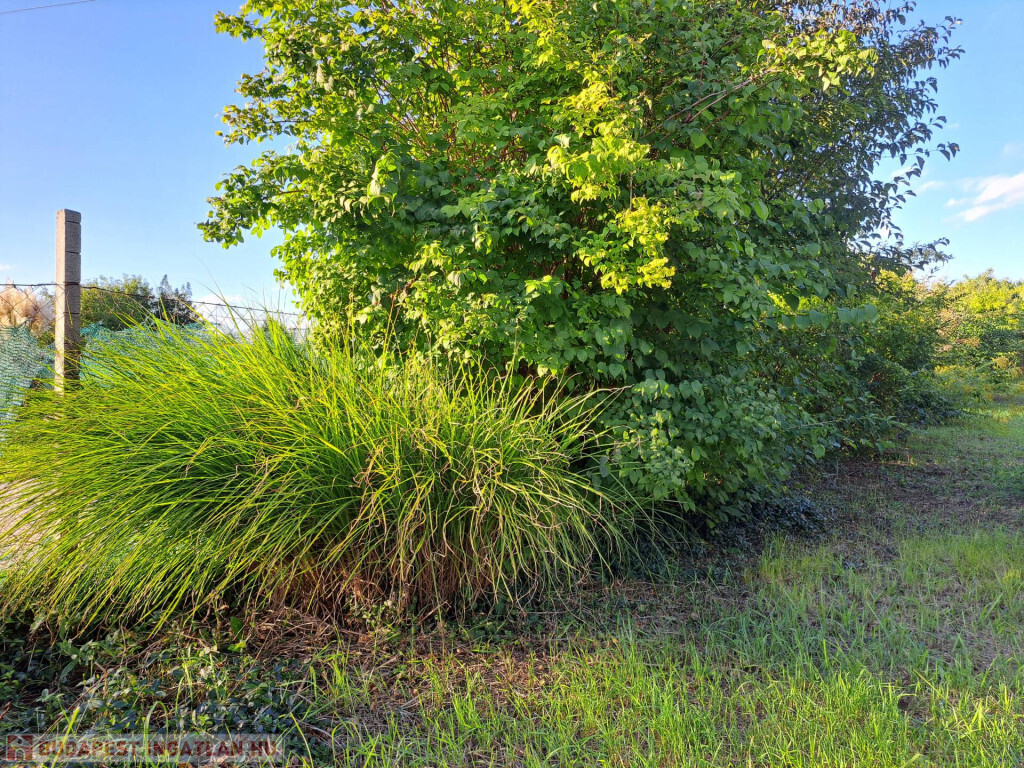 Rengeteg örökzöld, fűzfa, gyümölcsfa. A faház mögött egy művelt magaságyás lett kialakítva. Igazi "MESEKERT"!