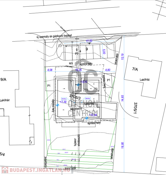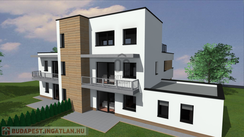 A tervek alapján egy 4 lakásos társasház + 1 iroda építhető rá.