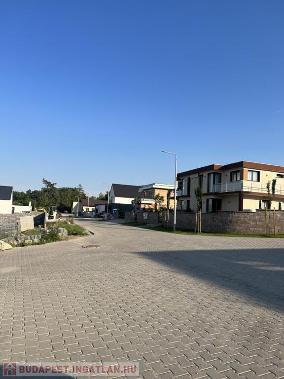 A telek öszközművesített (víz,villany,csatorna). A lakóparkot átszelő térkövezett út pedig a már elkészült.