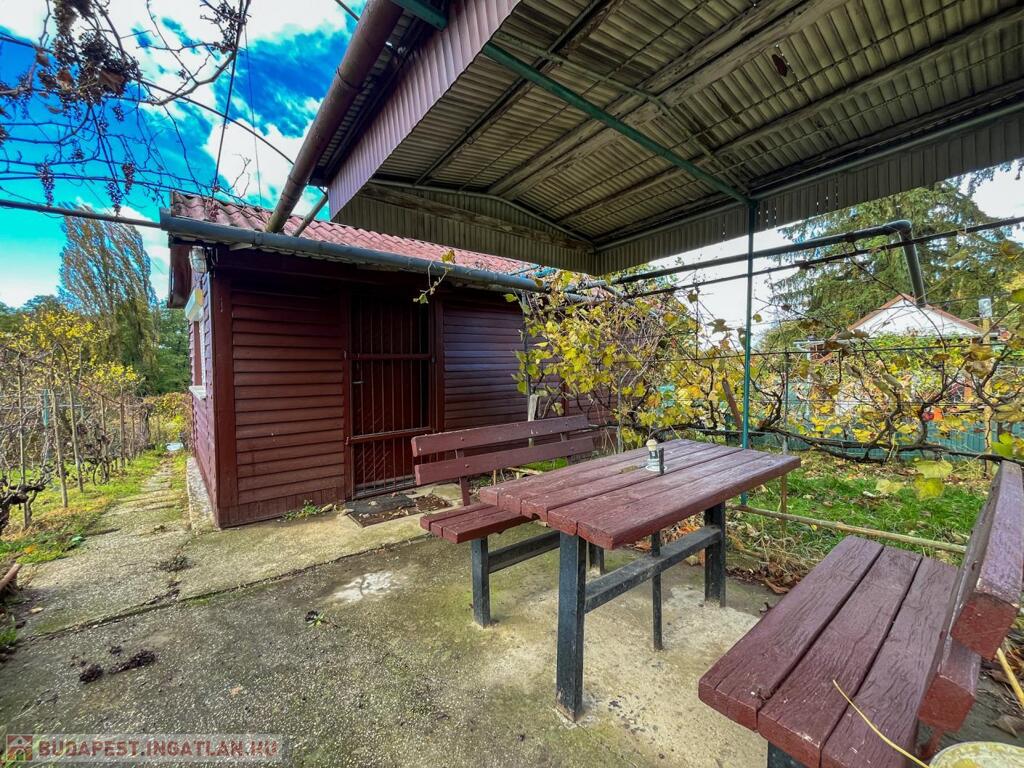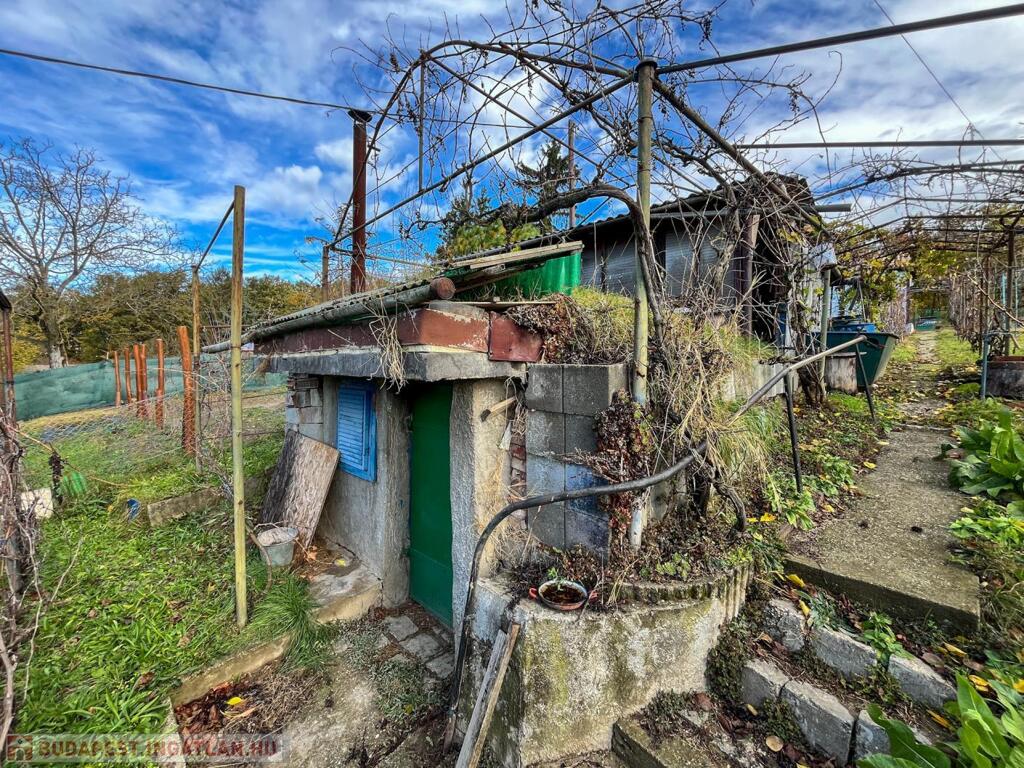 A kert víz- és villanyellátással is rendelkezik, így a természet közelsége mellett a kényelmet sem kell nélkülöznie. A telken egy 10 m²-es könnyűszerkezetes kis ház bújik meg, mellette egy 4 m²-es pince, amely praktikus tárolóként szolgál — akár kerti eszközök, akár a termés elhelyezésére.