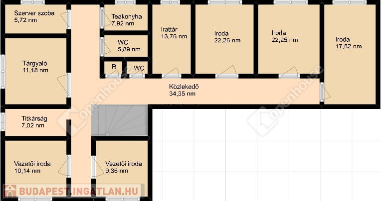 - Az emeleten több iroda, tárgyaló, rendszergazda terem és mellékhelyiségek