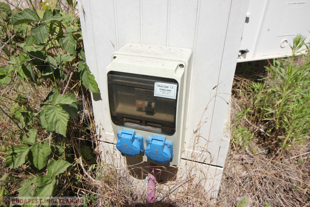 A körbe kerített telken belül földkábeles kiállással 32 Amper áll rendelkezésre!