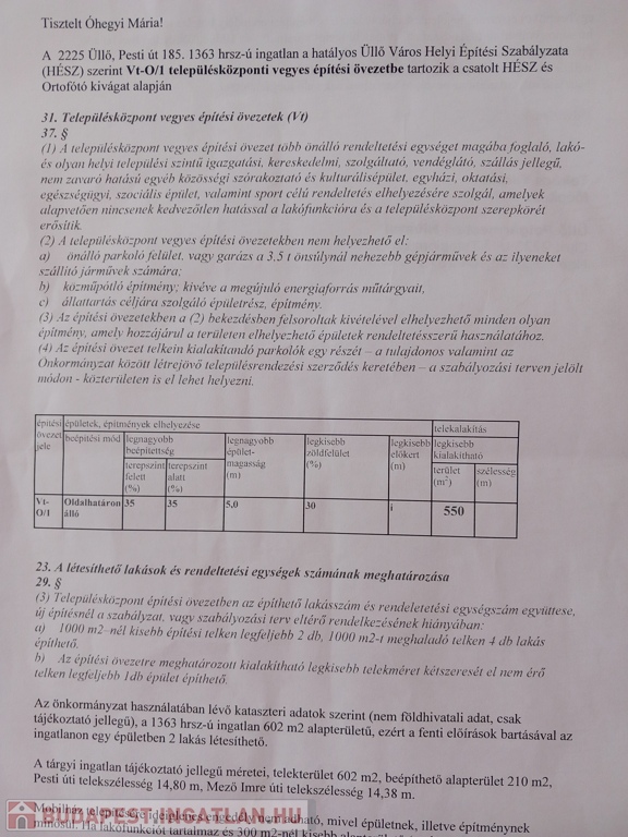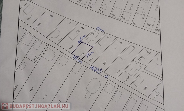 Mérete 320m2 ügyvédi megosztással kb 80-90m2-es családi ház építhető rá. Egy hrsz-on van de két utcára nyílik az ingatlan. A Mező utcára nyíló 320m2 rész eladó. Külön közművekkel és órákkal, víz, villany és csatornával. Beépíthetőség 35%. Vegyes építési övezetben helyezkedik el. Külön közművek dokumentációját csatolom. A telek üres rendezett, azonnal kezdhető az építkezés. Méretei 15 m széles és 21m hosszú. Hatályos építési szabályzat térképészeti rajz mellékelve. Csendes utcában kedves szomszédokkal. Érdeklődni Tel 36 20 558 5739