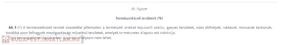 Tk besorolású, azaz természetközeli terület, nem beépíthető.