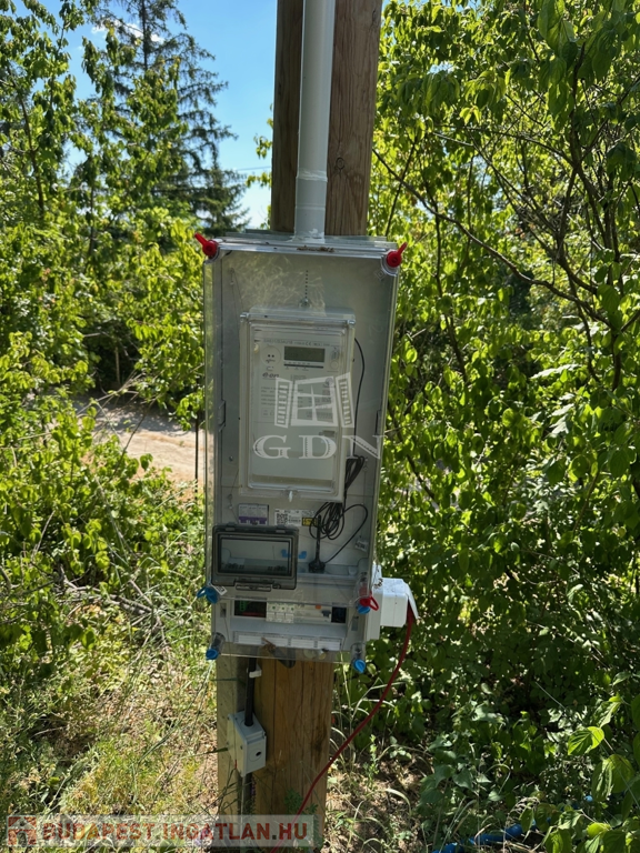 Áram (3X32A) a telken belül található, a vizet fúrt kút biztosítja.