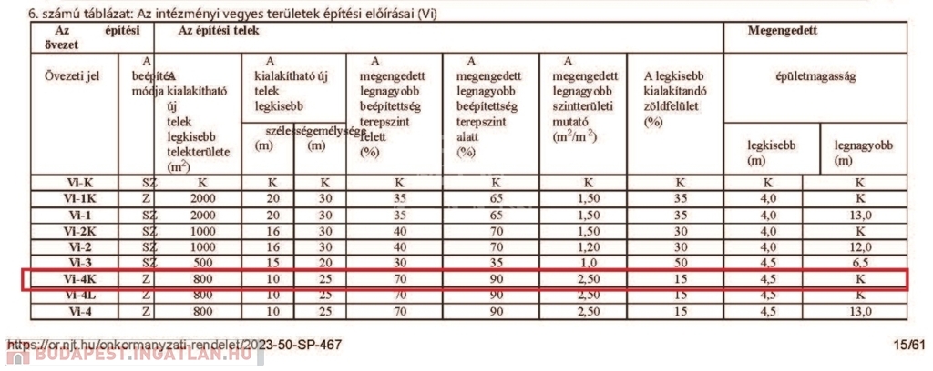 Felszín alatt 90%-os, a felszín felett 70% beépíthetőség lehetséges az érvényes HÉSZ szerint, s mindezt 13 méteres épületmagassággal lehet tervezni.