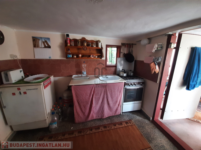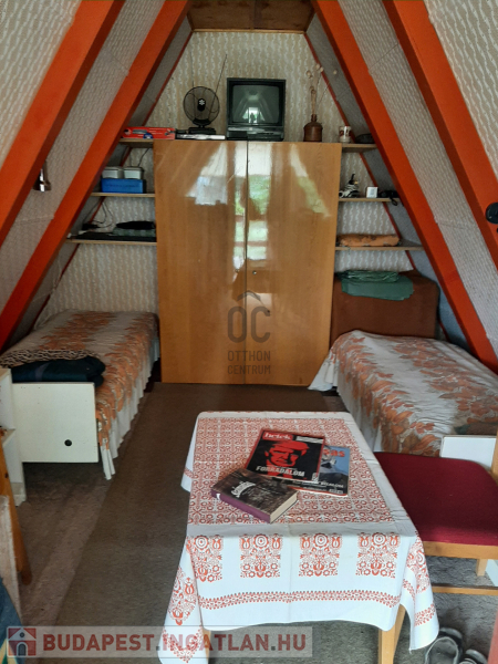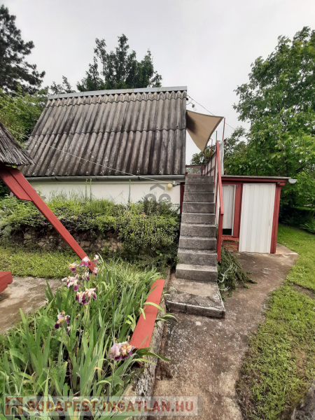 A 35 nm-es kis hétvégi ház betonbólés fából épült,palatetővel,fa nyílászárókkal.A földszinten előtér ,nyárikonyha ,tároló ,az emeleten egy szoba található,melynek teraszáról csodás kilátás nyílik az erdőre illetve a városra.