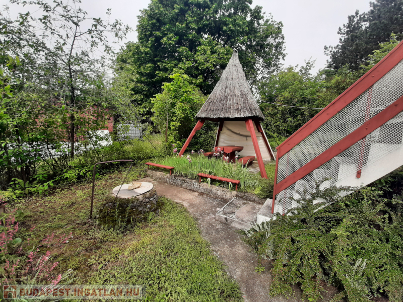 A telken a villany bevezetésre került,itt található egy náddal bevont kiülő,kültéri wc,kültéri zuhanyzó,szerszámtárolók,ciszterna.