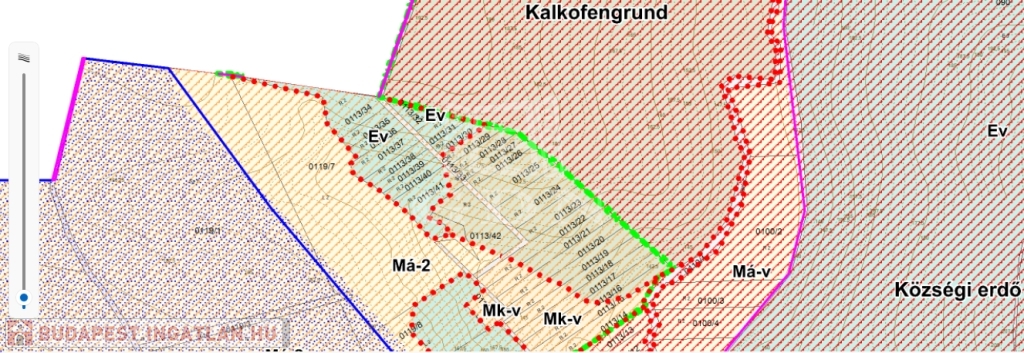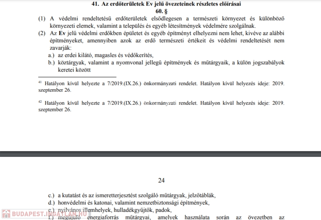 EV besorolású, azaz védelmi rendeltetésű erdőterület, nem beépíthető.