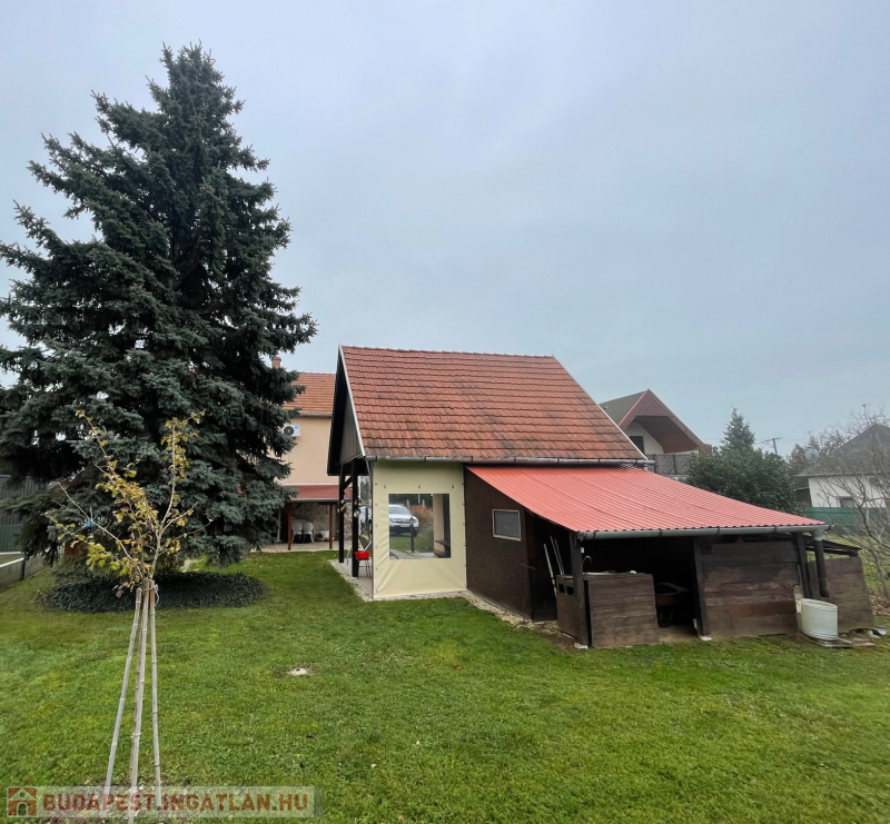 A főépület mögött elhelyezett 18 m2-es, téglaépítésű melléképület 18 m2-es fedett terasszal egészül ki. Jelenleg nyárikonyhaként funkcionál, de mivel az áram, csatorna és víz is bevezetésre került, akár pihenő, szauna helyiség is kialakítható benne, vagy egy önálló kis apartman. A melléképülethez egy tágas tároló is tartozik.