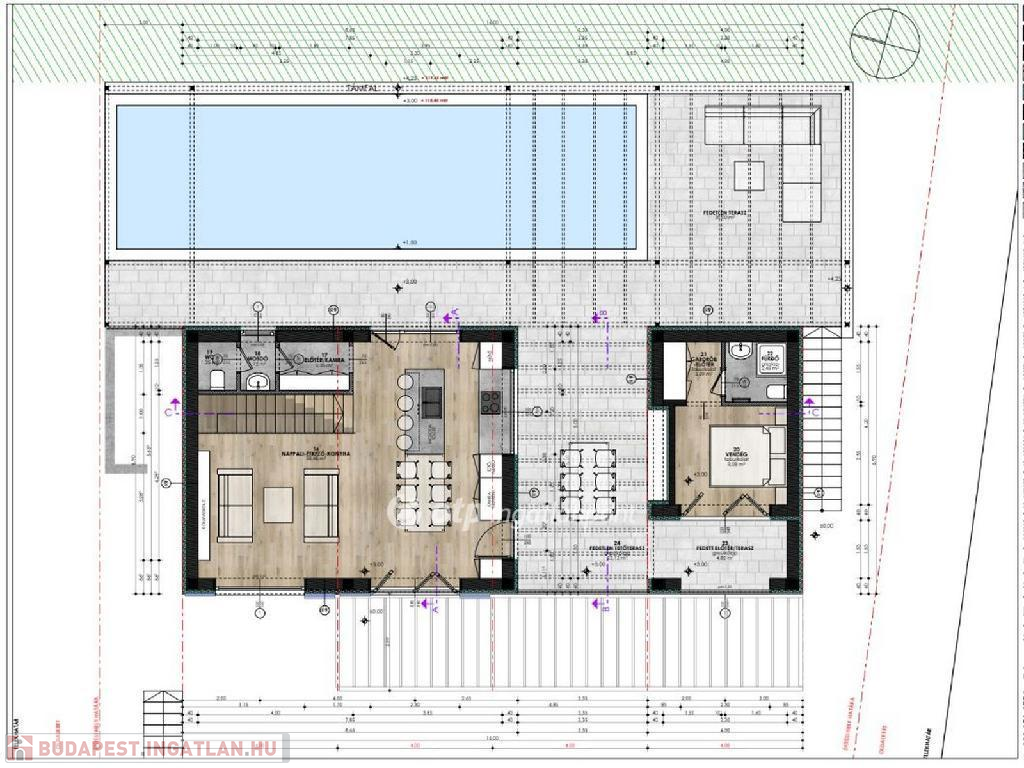 A telek és az épület különleges adottságai rengeteg lehetőséget rejtenek magukban hisz a tulajdonosok egy igazán egyedi projektbe fogtak, amely nagymértékben növeli az ingatlan értékét. A környéken ritkán találunk olyan ingatlant, amely ilyen kivételes balatoni panorámával rendelkezik, ezért különösen értékes. A tervrajzokon is kivehető egy hatalmas amerikai konyhás nappali, 4 szoba (mindegyikhez külön fürdő) számos eszméletlen fedett és nyitott terasz és egy 4x14 méteres lenyűgöző medence ami ennek a pazar ingatlannak a karakterét alkotja.