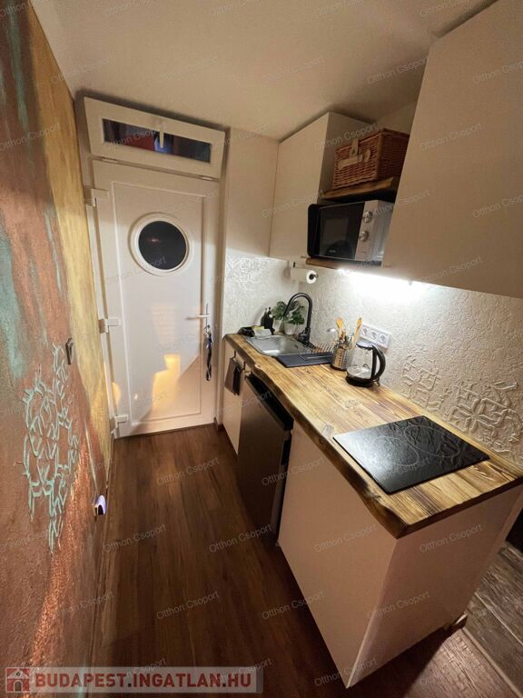 Egyedi tervezésű, prémium design-apartman eladó Balatonalmádi Káptalanfüred részén társasüdülőben, a teraszról balatoni panorámával, gondozott, közös használatú kerttel, napozóval, grillezővel, kiülővel, közúton 600 méterre a hangulatos, családias Káptalanfüred strandtól, gyalog se több néhány percnél. Saját, zárható, árnyékolt kocsibeállóval, parkolóval közvetlenül a ház mellett (amely részét képezi az adásvételnek). Műszakilag tökéletesen felújított és tervező által megdizájnolt állapotban, tehát teljesen új elektromos és vízhálózattal, teljes felületén elektromos fűtőszálas padlófűtéssel, szobatermosztáttal. Dél-keleti tájolású, szépen árnyékolt, földszinti nyaraló, a teraszról kijárással a gyönyörű kertre, melyet kertész gondoz. Alapterülete 25,3 m2, egy nappali/háló kihúzható kanapéval, + egy vendég-fotelágy, 3 személy részére kényelmes alvási lehetőséggel, ill. 3 személyre szabott ebédlőasztallal, tágas gardróbbal. Teljeskörűen berendezett, új konyha rész új háztartási gépekkel, önálló fürdőszoba tusolóval, wc-vel, 50 literes bojlerrel. Terasz 5 m2, 2+2 személy számára kiülési lehetőséggel, balatoni panorámával. A legtöbb bútor, ill. berendezés egyedileg tervezve és gyártva borovi fenyőből a lehető legoptimálisabb helykihasználással. Csodás panoráma nyílik bentről is a nappaliból a Balatonra a hatalmas üvegfelületen keresztül. Az árban foglaltatik az összes berendezési tárgy és bútor okostévével, hűtőszekrénnyel, mosógéppel, dísztárgyakkal, mindennel együtt. Kiadásra, szállásoltásra, turizmusra remek megtérülésű befektetésként, avagy saját használatra pihenésre, töltődésre, kikapcsolódásra egyaránt kitűnő lehetőség. Ára: 49 M Ft. 06209730443 Igény esetén örömmel megmutatom személyesen, hívjon bátran.