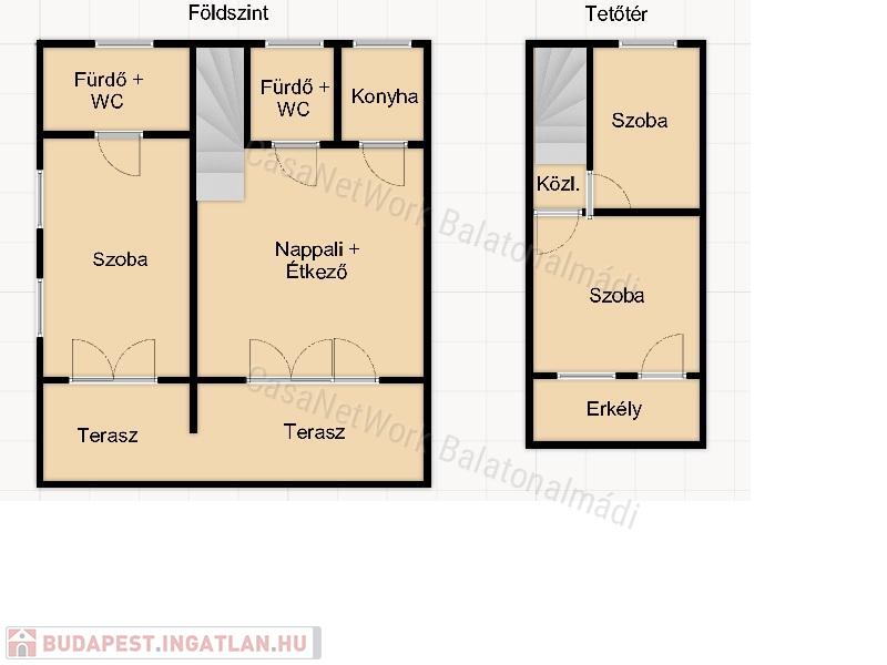 - külön bejáratú nagyobb része tetőtér beépítéses, 2+1 szobából, konyhából, fürdőszobából áll, másik része teljesen elszeparálva 1 szoba+fürdőszoba.