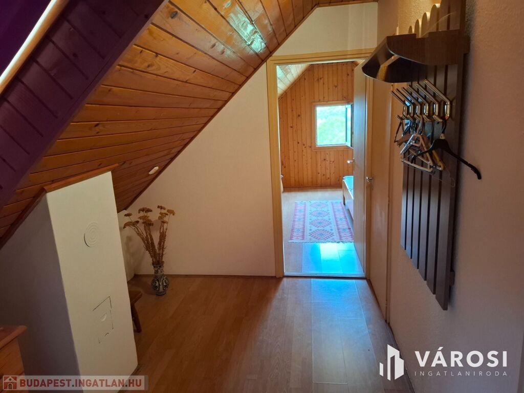 Csendes, zöldövezeti környezetben,3785 m²-es telken található ez a kétszintes, 90 m²-es nyaraló. A földszinten nappali–konyha–étkező, az emeleten két hálószoba, külön fürdő és WC szolgálja a kényelmet. Az ingatlan berendezett, fa zsalugáteres ablakokkal, vezetékes vízzel, szennyvíz-elhelyezéssel, új villamoshálózattal és 3 fázisú árammal rendelkezik.