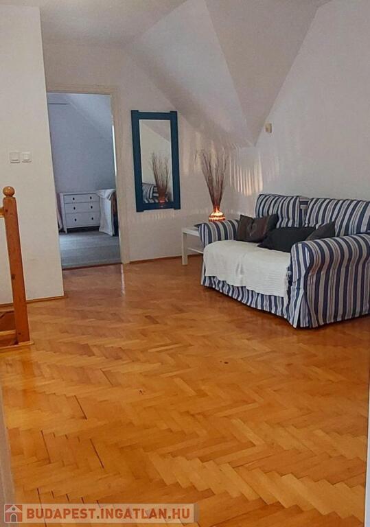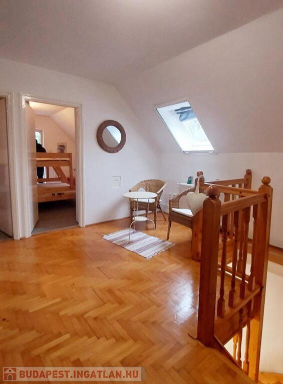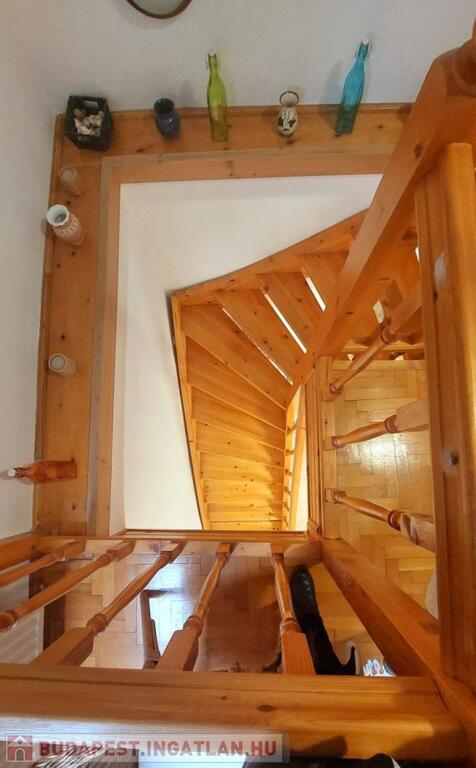 A ház falazata kő és tégla. Az alsó szinten különálló grázs(15m2-gázkazán,mosókamra) nappali(25m2), étkező(20m2 +feljáró az emeletre), konyha(7m2), fürdő-wc(3m2).A felső szinten hálószoba1(16m2), hálószoba2(16m2), hálószoba3(10m2), hálószoba4(10m2), nappali(13m2), fürdőszoba-wc(9m2) és egy erkély(12m2)található.