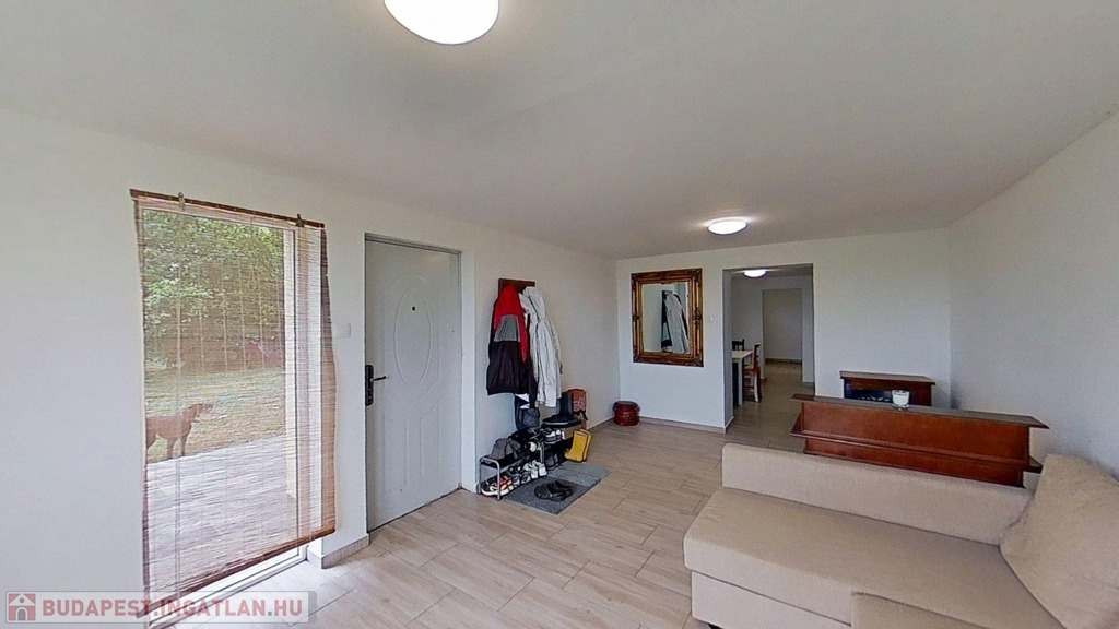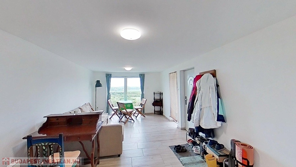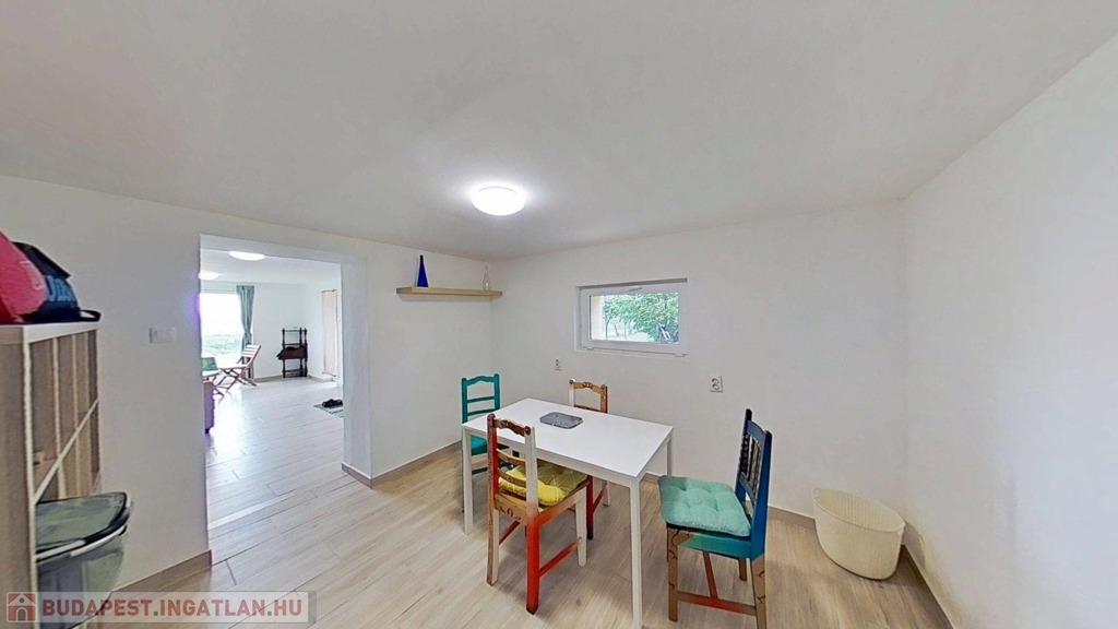 A D-i tájolású, 3 szintes, 106 m2-es, 3 szobás, tégla építésű ikerház félhez 1088 m2-es, enyhén lejtős, körbekerített telek tartozik. Gyümölcsfával, fügefákkal, örökzöld bokrokkal részben beültetett kertje tovább növeli a hely intimitását, valamint a nagysága lehetőséget teremt akár tiny house vagy jurta elhelyezésére.