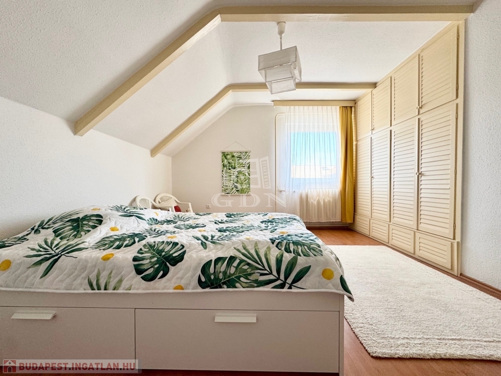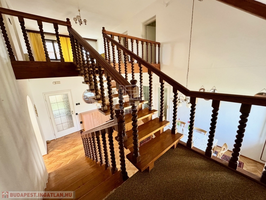 A Balaton északi partjának egyik legszebb városában, Balatonfüreden, kiváló közlekedés és ellátottság mellett, kertvárosi környezetben, 10 perc sétára a vitorlás kikötőtől, és a Tagore sétánytól, 586 m2-es összközműves telken, 1990-ben épült, 190 m2-es lakóterületű, 2 szintes, dupla komfortos, dupla nappalis + 3 hálószobás, a földszinten található nappaliból közvetlen 40 m2 -es teraszkapcsolattal rendelkező, kiváló elosztású, külön nyíló szobás, napos-világos, K-NY-i tájolású, alacsony fenntartású, kombinált gázcirkó és cserépkályha fűtésű, jó állapotú, 2018-ban új thermo ablakokra cserélt, klimatizált, riasztórendszerrel felszerelt családi ház, beépített, gépesített konyhával, nagyméretű tárolóval, garázzsal, úszómedencével, rendezett kerttel, rugalmas költözéssel eladó.
