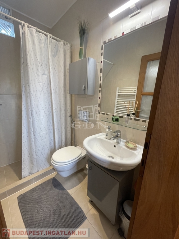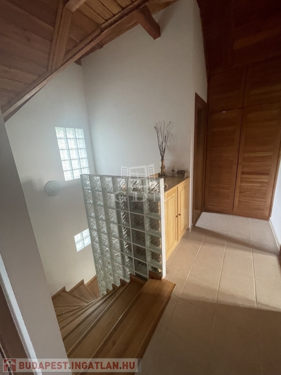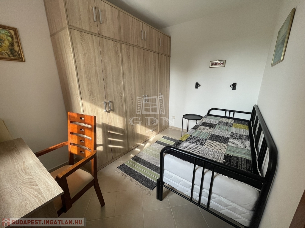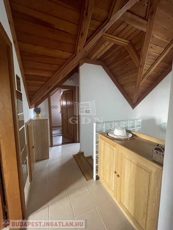 Emelet: 2 hálószoba (20 és 10,2 m²) split klímákkal, sarokkádas fürdő (4,1 m²), külön WC (1,6 m²), tároló