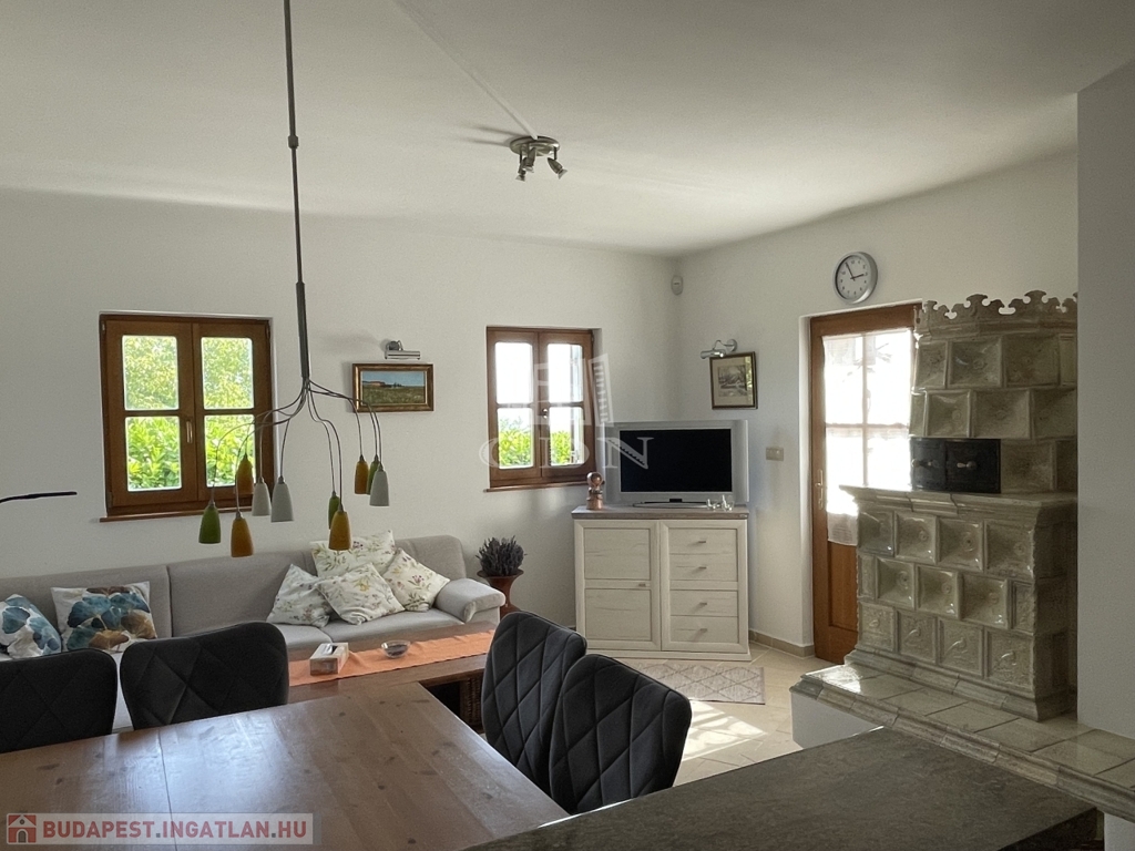 Kiegészítők: cserépkályha, infraszauna, félköríves terasz (25 m²), melynek burkolata felújításra szorul, így lehetőséget biztosítva a további egyéni igények kialakítására.